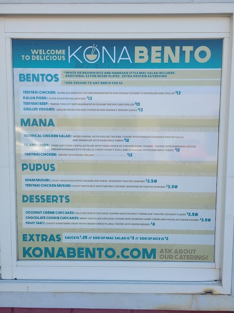 Kona Bento's menu features a well-curated selection of Hawaiian dishes made with fresh ingredients. Highlights include bento boxes with choices like grilled veggies, teriyaki chicken, and pork. Each entrée comes with sides like rice and macaroni salad, creating a balanced meal.